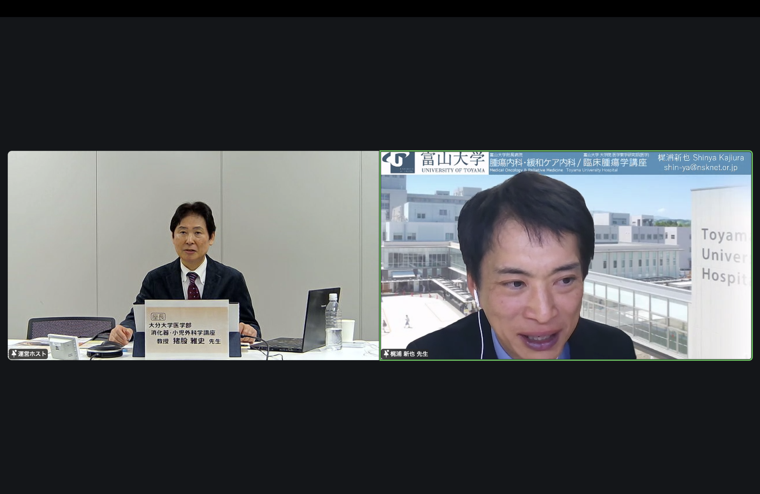 2026.02.03「がん診療医のためのがん疼痛緩和Webセミナー」が開催されました。 2月2日(月)、がん診療医のためのがん疼痛緩和Webセミナー」が開催されました。大分大学医学部 麻酔科学講座 中野 孝美 先生より「当院におけるがん性疼痛マネジメント」についての特別講演I、また、富山大学腫瘍内科・緩和ケア内科 講師 梶浦 新也 先生により「がん治療医が実践する緩和ケアとがん疼痛治療」の特別講演IIが行われました。多くの参加者のもと、盛会のうちに終了しました。 次へ 一覧へ